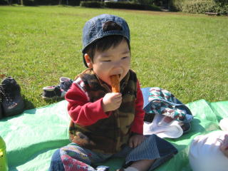 | 皇子原公園に行きました。大好きなエビフライを食べています。 | |