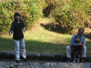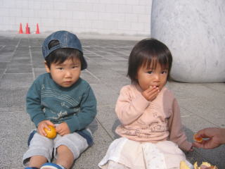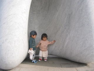 | 美術館の前の大きなオブジェで遊んでいます。 | |