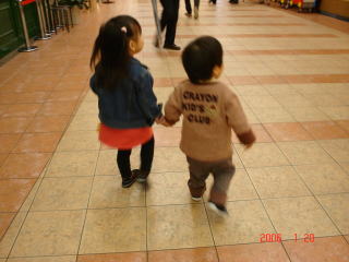 | はじめてりおちゃんと2人で手をつないで歩きました。今まではどちらかがいやいや言ってダメだったのに、ついにこの日がやってきましたー!!!感激〜! | |