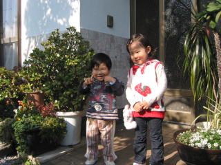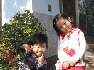 | こうちゃんはお得意のポーズ!はなちゃんは女の子らしいおすましポーズ!二人ともかわゆーい☆ | |