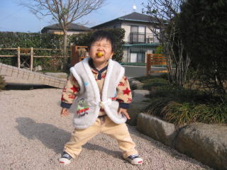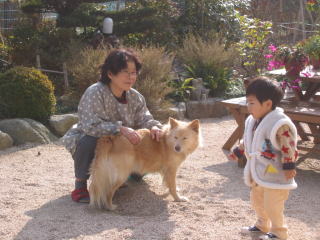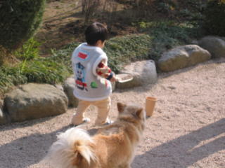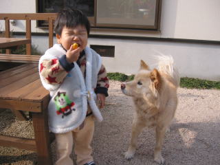 | ジョリーはこうちゃんの食べているきんかんがどうしても気になるみたい。 | |