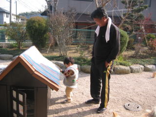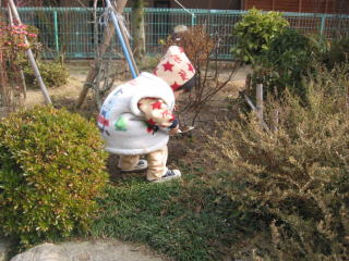 | スコップを持ってウロウロ。ジョリーもついて行くー。 | |