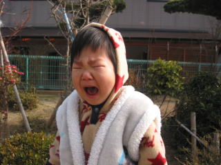 | せっかくジョリーに慣れたのに、いきなり「ワン!!」と吠えられてびっくり!大泣きのこうちゃんです。 | |