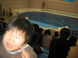 | かごしま水族館に行きました。今からイルカの時間です。ここではイルカのショーとは呼ばないそうです。 | |