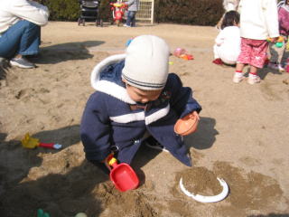 | 初砂場遊び!こうちゃんは飽きもせずずーっと遊んでいました。 | |