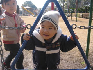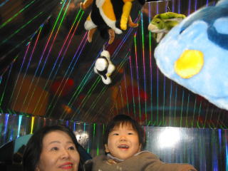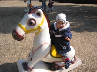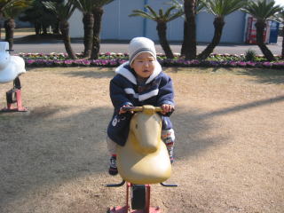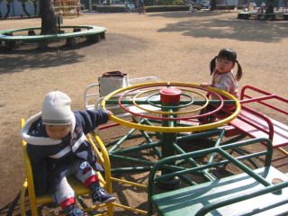 | このクルクルまわるのは気に入ったみたい。一緒に乗っているのはりおちゃん☆ | |