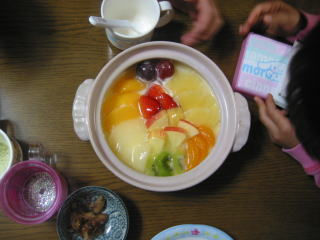 | あいなちゃんとひかりちゃんのおうちでお鍋をいただきました。子供たちは土鍋プリンに大喜び! | |