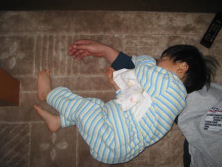 | 今日も遊び疲れて、パパの腕枕であっという間に寝ちゃいました。 | |