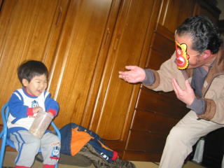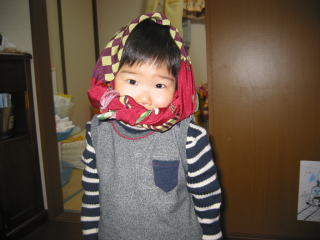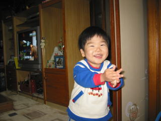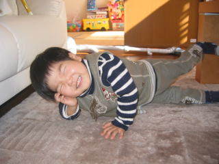 | パパの真似をしているところです。くせらしいね!(ませてるって言えばいいのかな?) | |