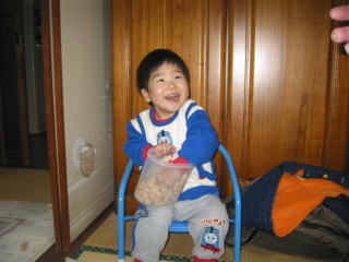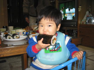 | 太巻きをがぶり!でも一口食べたら食べなくなっちゃた。どうも酢飯が苦手みたい。 | ![]() |