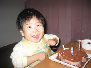 | ママの手作りバレンタインケーキ!でもココアパウダーが苦いみたいで、一口しか食べてくれなかった・・・。こりゃ失敗。 |