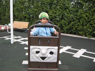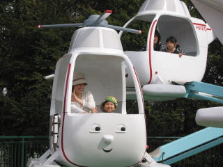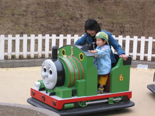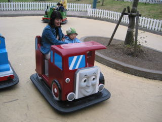 | 「いたずらクランキー」にばあばと乗ったけど、かなり怖がったみたい・・・。 | |