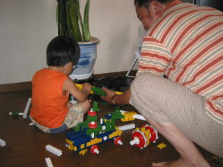 | 約30年前のブロック。いとこが子供の頃遊んでいたブロックを大事にとっていたみたい!!ちょっと高度なブロックだったけどこうちゃんはけっこう遊んでいました。 | |