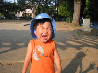| 公園に遊びに行ったら、眠くなったのか急に泣き出しました。困ったチャンだな〜。 | |