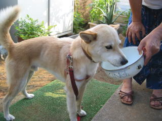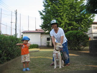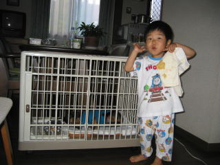| ゲージの中のわんちゃんは「麦ちゃん」。ママのいとこのわんちゃんです。麦ちゃんも本当におりこうさん。 | |