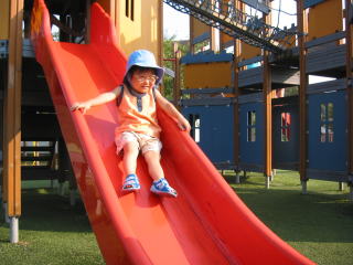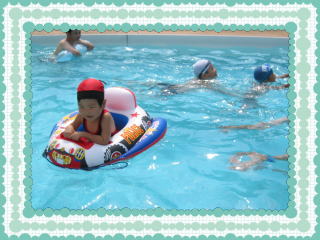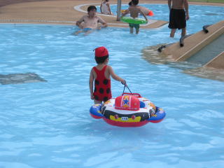 初めて公共のプールに行きました。流れるプールでごきげんです♪