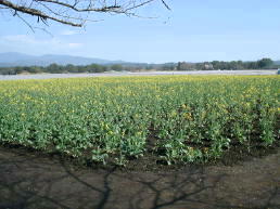 | <<写真は、西都の古墳公園>> 昔、組合青年部の駅伝大会にここを利 用したときに、CMのロケハンがきてたらしい。その後「一番絞り」で同じ 風景を目にするが実物以上に「菜の 花」が強化されてる。 最近の技術はスゴイものだね |