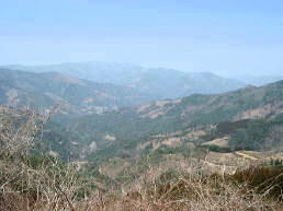 | <<写真は、R265の飯干峠>> 春は霞のなんとやら♪民謡の世界だ! この後に道ばたで山鳥と遭遇!! エラくスマートなチャボってかんじぃ こんな道はKDXの方がよかった! |