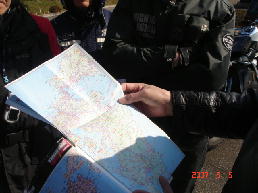 (温泉を出たところで帰り道を検討している。貞坊さん=写真)