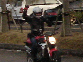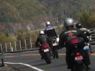 国道220号に出たところで、いったん小隊の集結を待ち、それぞれのモビルスーツ(バイクだってば)の燃料補給およびパイロットの栄養補給を行うことにする。