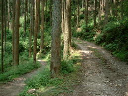 | <<こんな道1>> 缶コーヒーでも買っておくとよかった この下一服にはもってこいの、涼しい場所が有った。 |