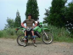 バイクは前回と仕様が同じなため最悪!舗装路でもMAX60km/時ぐらい。 人間も写真にしてみるとかなりの体重があるのがわかる。バイクの性能を落としてるのは腹と背中の肉10kgだろうか? 本人もバイクもセッティングが大事だ! |