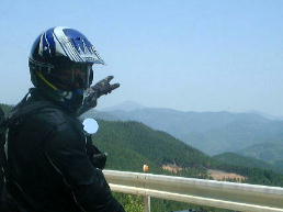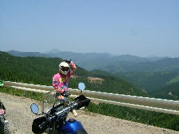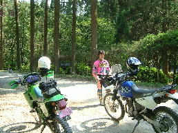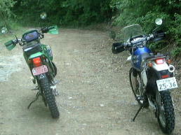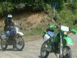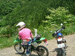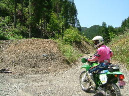| 今日は、すごく天気がいいです。 随分と標高の高いところの林道で、まさに「九州山脈ツーリング」です。 最近、雨が少なかったので硬く引き締まっています。 しかし、舞い上がる砂ボコリも多いです。 |