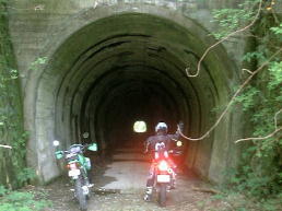 ☆途中に現れたトンネル 使用されていないトンネルって「雰囲気」アリマス。恐え〜 もし、物の怪にでもとりつかれても映画コンスタンティンのように相棒がオッパラッテくれるでしょう! 結構、道に迷います。 林道は観光地ではないので親切な表示は少ないです。 |