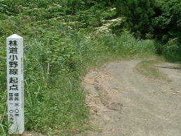 道に迷いながらも、ようやくたどり着いた「林道荒水谷線」! そして、分岐! どちらを選ぼうか迷いますが困難を多そうな道をチョイス、結局またここに戻ってきました。 |