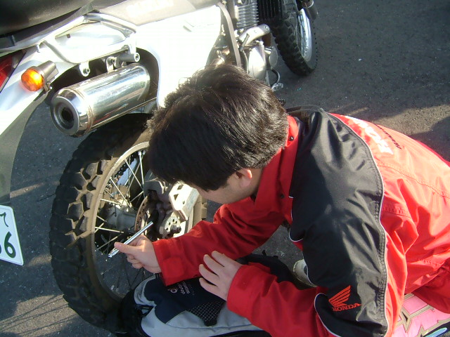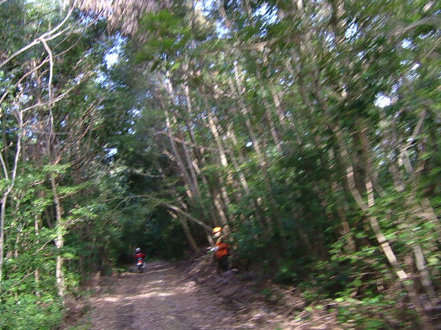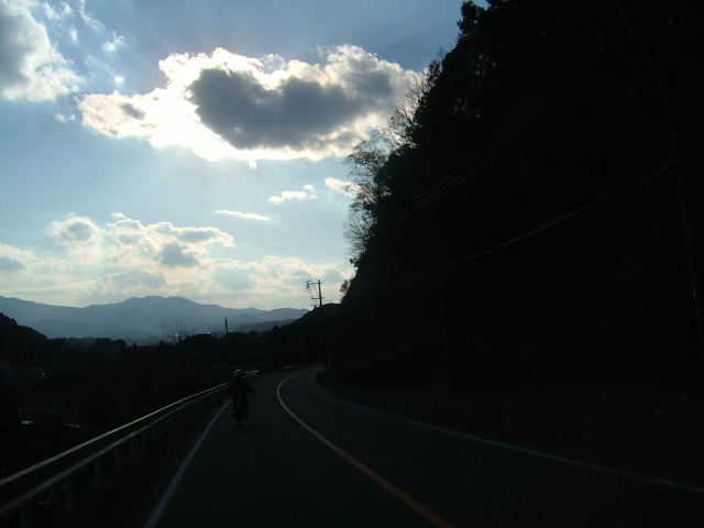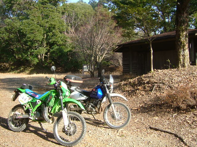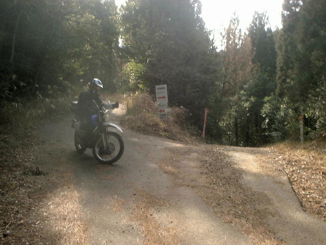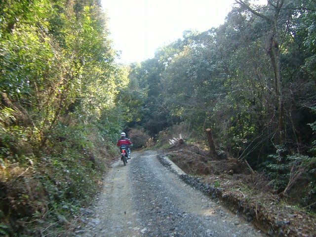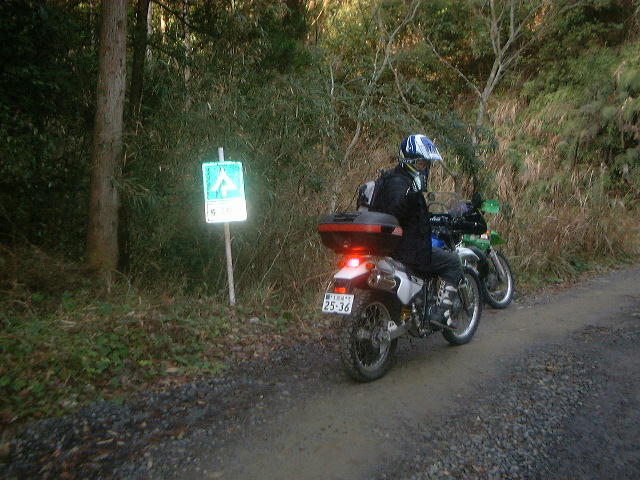 | 昨夜SETしておいた目覚ましが7時に起こしてくれました。 平成18年1月9日、今日は牧ちゃんと林道ツーリングを約束している日です。 家内が朝食のHOTサンドを用意してくれている間に装備の準備をします。 防寒対策:下着はユニクロのヒートテックもの。上はMXジャージにユニクロフリース。下はモトパンをチョイス(風を通しにくかろう判断)靴下には靴下用カイロを貼り付ける。上着のライディングジャケットには貼るカイロを3枚取り付ける。 装備品:ハンドルバーパッドに取り付けるポーチにはタオルとティッシュ。HIPバッグには地図、カップコーヒー×2、デジカメ、三脚、タオル、コッヘルの1部分、バーナーとGAS缶。 と、まぁこんなモノでしょう。 サンドをパクつている間に出発時間になり、寝起きの息子に見送られながらバイクに向かう。 「おぉ〜、とっても良い天気!」 ちなみに牧ちゃんが天気男を自称しているがボクは増幅男を自称しています。雨男と組むと最悪の結果が・・・ 寒いせいか?最近弄りまわしているキャブのせいか?なかなかアイドリングが安定しない。 時間が無いので不安定なまま出発した。 プスン! え〜〜〜〜〜! 信号待ちでエンジンスト〜〜〜プ! カッコわり〜! 再始動にはさほどの問題はないが、去年は、凍結スライディングやらパンクやらのトラブルの多かったボク これは気を引き締めてかからねば! 集合場所のコンビニには、ほぼ時間通りに到着しエアスクリュウーを少し開け気味にしてアイドリングの安定化を図ってみた。 (が、効を成しているような感じは最後までつかめずにいた) ここで、相棒到着けっこう飛ばしてきたらしい。それにジャケットの前は全開ではないですか?! アクセル全開だけに前も全開? 体を張ってギャグする!? すげぇ〜よ、あなた!(突っ込めなかったので心の声) 「さむくないですよ。コーヒーでも飲みませんか?」 ボクもあたたか〜いものが飲みたかったのでうれしい申し出です。 少々のダベリタイムのなか、ボクのKDXの空気圧が気になり測ってみた(最近ぬけやすいのだ、ハードチューブはぬけやすいというが・・・)1気圧と1.2気圧なのでまぁよろしいでしょう。 ついでに、牧ちゃんのジェベルも測ってみる、0.2気圧と0.6気圧? ガレ場でパンクするぞ〜! おぉ〜今日のトラブルを未然に防いだぞ〜! 今日はいいことあるかも〜! ↓《牧師さんに写真いただきました》 ![]() と、いうことでガソリンスタンドからRE出発となる。 今日、案内するところは「宮崎市高岡町の楠見林道」です。 出端に台風14号の爪あとにジャマされながらも僕らは山を目指す! それにしても、久しぶりの林道ツーリング! ダートを走ってナンボのオフロードマシン! このリスキー感がスキです! それにしても、中途半端なキャブセッティング! 姿勢をジャマするHIPバッグ! それでもオフがスキです! 牧ちゃんも1コーナー以上は離させずに後続している。 「おぉ〜 腕を上げてる〜!」しかもデジカメ写真もライディング中に撮ってるのは脱帽です。 フラットダートとはいえ、この芸等にはボクの負けです。真似できませんから〜 ↓《牧師さんに写真いただきました》 ![]() 頂上近くのキャンプ場を過ぎると展望が開けてる唯一の場所にでてくる。 実はボクの勘違いで、ここから楠見林道2線の間を無駄に探検することになりました。ゴメン! ↓《牧師さんに写真いただきました》 ![]() 楠見林道2線からも探検で“ツーリングマップル”上では、既に道は無い。 感を頼りに道なりに進んでいくと分岐に出た。ここは去年の2月に通った仁田尾林道ではないだろうか?確信はもてないが? 牧ちゃんはボクに道の選択を任してくれている。分岐から少し北に進んだところに答えがありました。仁田尾林道正解! ついでに去年走らなかったルートを走ってしまおうと更に北上。 この分岐からの林道名はよくわからないので便宜上「唐崎線」としたいと思います。 伐木作業をしているところまでは道幅もあり走りやすい。 途中ハンター数名がリアルに怖いかも・・・ ↓《牧師さんに写真いただきました》 ![]() 標高差を埋める為に狭く長い下りを終え国道10号にでてくる。 ここから当初の予定通り“やすらぎの郷”で温泉・昼食をすることにロスを考えるようになる。優柔不断でゴメン、ボクはO型です。 ↓《牧師さんに写真いただきました》 ![]() コンビニで食料を買い込み、再び仁田尾林道へ。 適当な沢まで下りて、湯を沸かし、カップラーメンも乙なもの、結構なバイク談義・アウトドア談義に華をさかせましたね。 ↓《牧師さんに写真いただきました》 ![]() 仁田尾林道から楠見林道2線にむけて再び走る。 じつは、楠見林道2線から宮大演習林の林道を走れると情報があったのだ。あまり車が入らないであろう道なのだがバイクの轍が確かにある。“いける”ボクは確信しました。 ここから修行が始まりました。 ↓《牧師さんに写真いただきました》 ![]() 結果は倒木の為に通り抜けは不可能でした。ゴメンなさい(何回謝