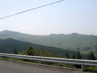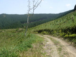 椿山峠に向けて、 ルート的に言うと「県道27号線」いわゆる「飫肥街道」。 峠(森林公園)までは、一部拡張工事中はあるものの幅のある2車線になってきた。レーサーレプリカタイプのバイクならその気にさせてくれそうな道です。僕も250cc時代には休日の度に遊びにきていました。 写真の向かいの山肌には無数の林道が見えます。地図にあるアプローチでは分岐が多くなかなか辿り着けません。過去に何度か失敗しています。 | |