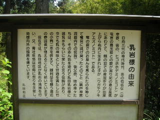 乳岩様の由来 神話の時代の話。山幸彦と竜宮の姫との間に生まれた子供にこの乳石様からでる乳を飲ませたって・・・ この話を現代風にすると・・・・ ????・・・・・・!!!!!! 乳石様の設定がデキナイ! | |