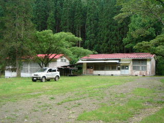 校舎のあった跡地です。ここには平屋の教室と体育館がありました。