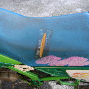 「グリーン塗装」の写真を撮り忘れていました。 石鹸水で気泡を排除しながら、上記で作成したものを貼り付け |