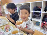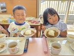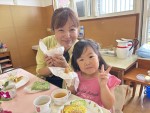 |  給食 お母さんと一緒で楽しいな  |
