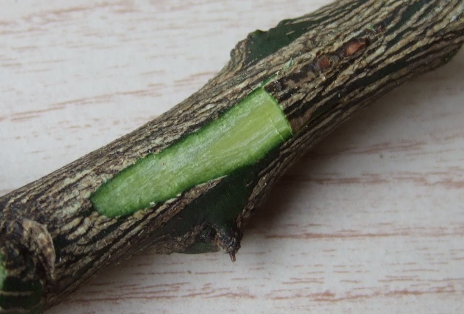 反対側を形成層が少し出る程度にそぎ落とします。