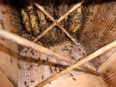 巣板が落ちてテンヤワンヤ。犠牲蜂も沢山出た。技術の未熟さをわびる。