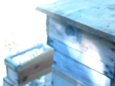 このままだと消滅しそうなので、7月26日新しい巣箱への入れ替えを試みる。蜂数は多かった。