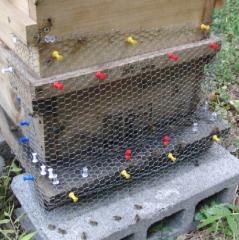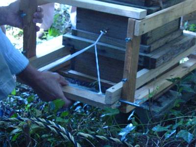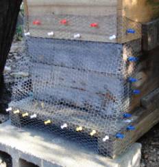 重箱の巣門周辺を亀甲金網の8mmで覆います。 |