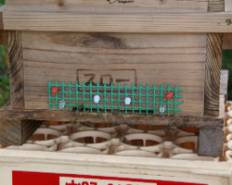 亀甲金網は重箱の形に添わせる事が出来ます〜。 金網と巣門の間に有る程度の空間を作る所がみそです。 |