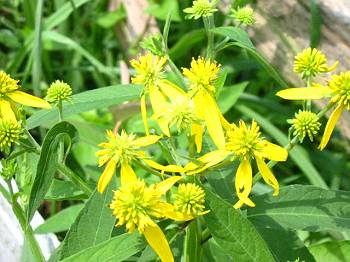 | ハチミツソウ(オオハンゴンソウさんに種を頂き、開花) ハチミツソウ(蜂蜜草) は、夏〜秋に、黄色い花を咲かせる キク科の多年草で、北米からの帰化植物。 長期間に渡り花を咲かせ、また、良質な蜜を持っているので 養蜂用植物として植えられます。 一般名:ハチミツソウ(蜂蜜草) 別名:ハネミギク(羽実菊) 原産地:北アメリカ 開花期:8〜10月 花色:黄 播き時:春 *多年草:花が咲いた株は上部は枯れるけど、根は残り また芽が出てくるそうです。 |