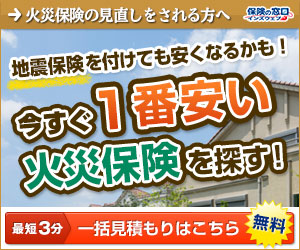 不動産会社から提示された火災保険と比較して、40万円近く安い保険に加入することができました。