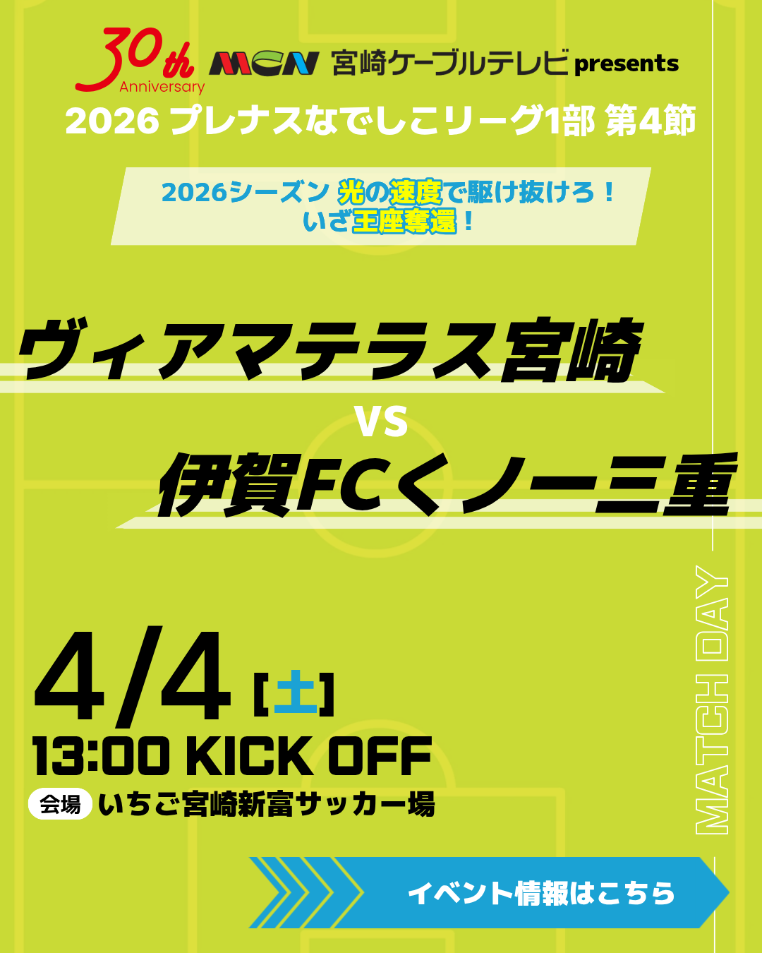 2026年4月4日(土)ヴィアマテラス宮崎マッチデーイベントのお知らせ
