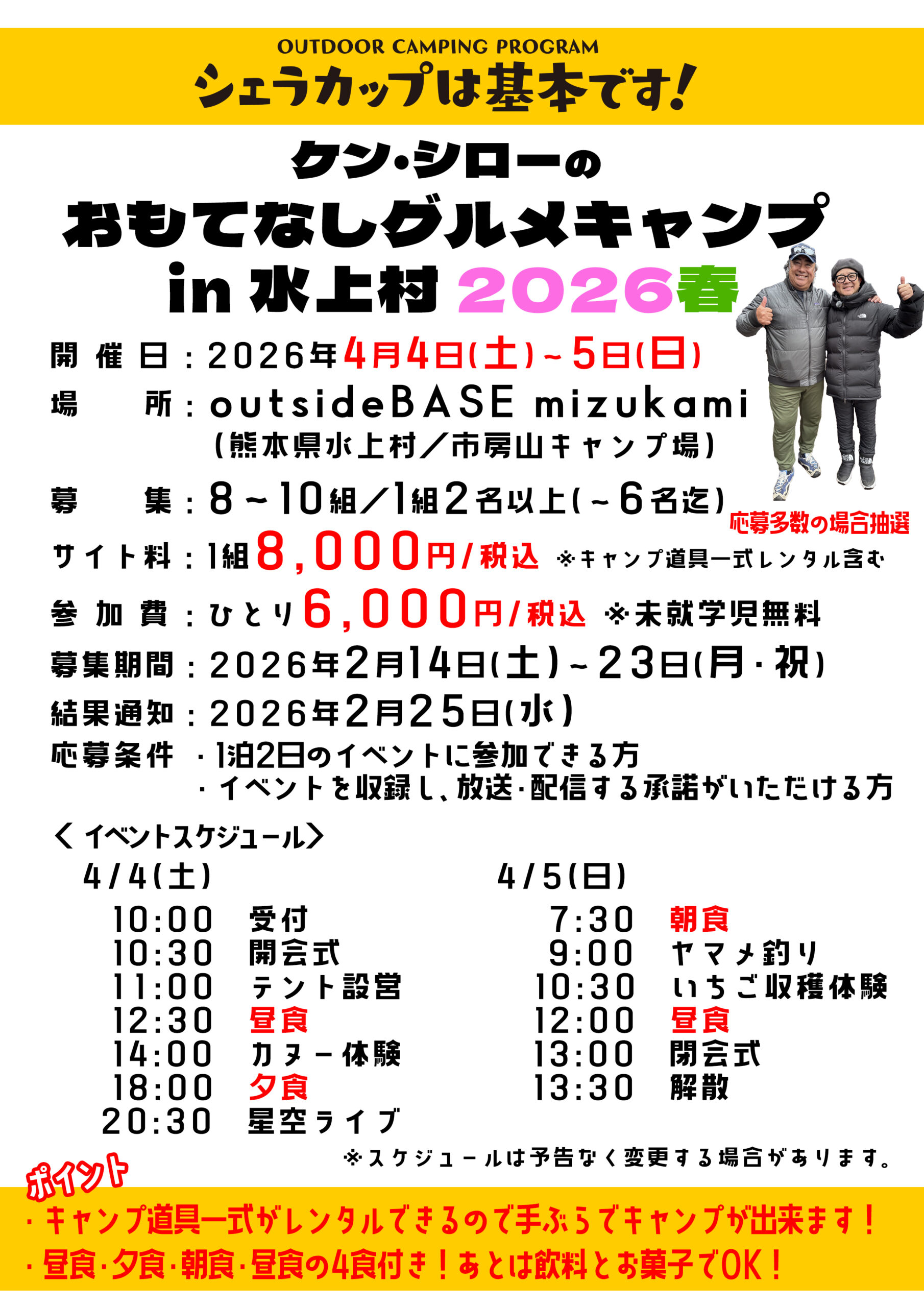 シェラカップは基本です!おもてなしグルメキャンプin水上村 2026春 参加者募集のお知らせ