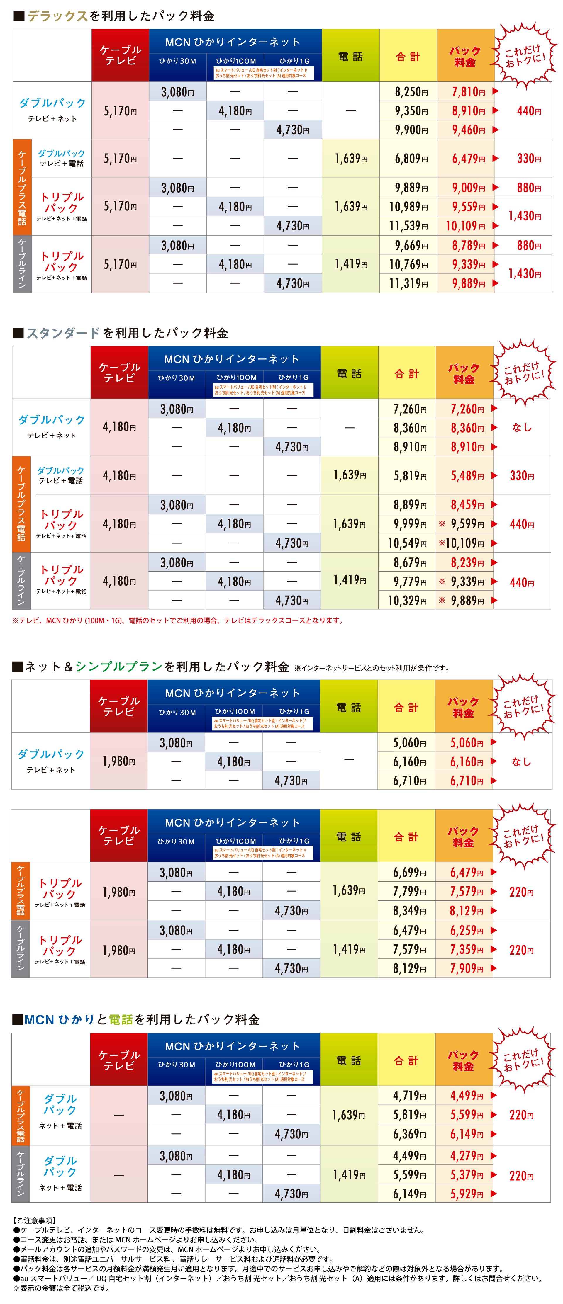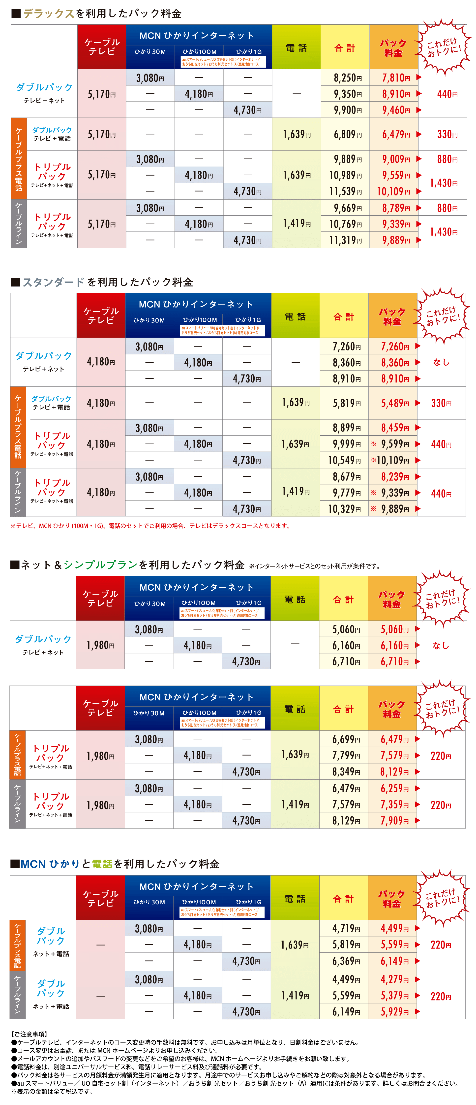 パック料金(FTTH)