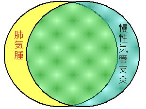 COPDは、慢性気管支炎と肺気腫を統合した病名です。多くの場合これら二つの病態は合併しています。(図-2)
