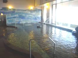 塩化物温泉」、浴槽の種類は大展望風呂(3階)に大浴場(約4×13m、ジェットバス2、