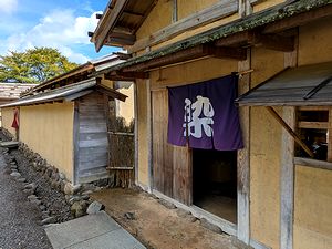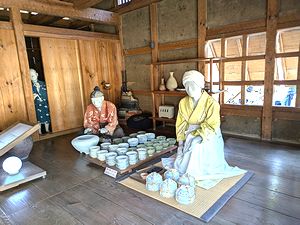 こちらは、うつわ物の商い・・・ | 当主朝倉家の屋敷跡。門は、江戸時代の復元だそうです。 | |