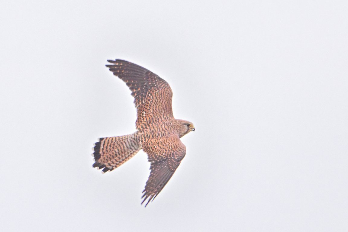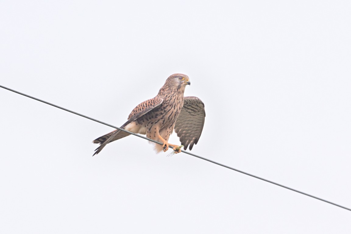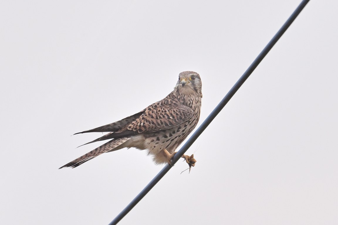 2月17日撮影: チョウゲンボウが小鳥をゲットして食べていた!。バッタ類、小動物専門と思っていたが小鳥も獲るのですね!生きるためには腹が空けば小鳥だって・・・猛禽ですからね!