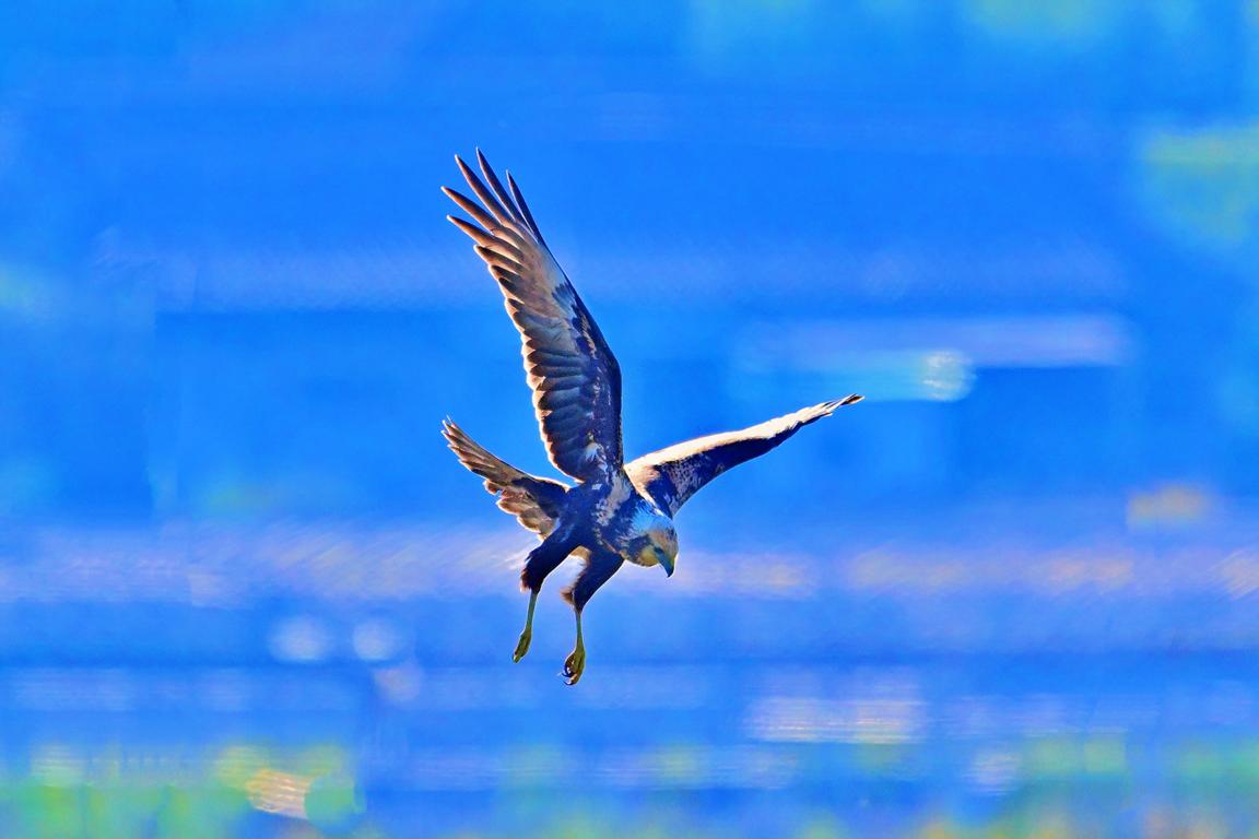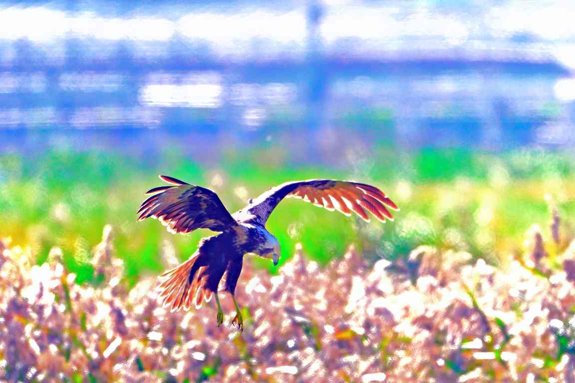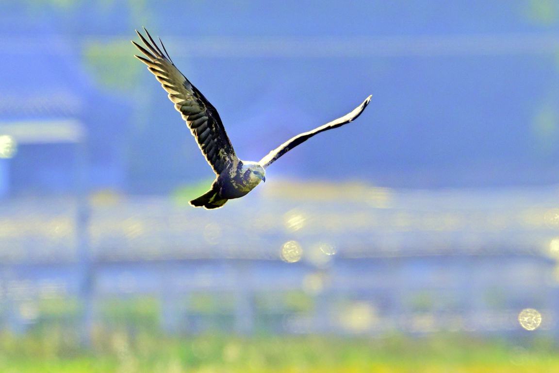 強い逆光の中、チュウヒが飛び出した。撮れてはいたが日差しの中ぼやけていた。